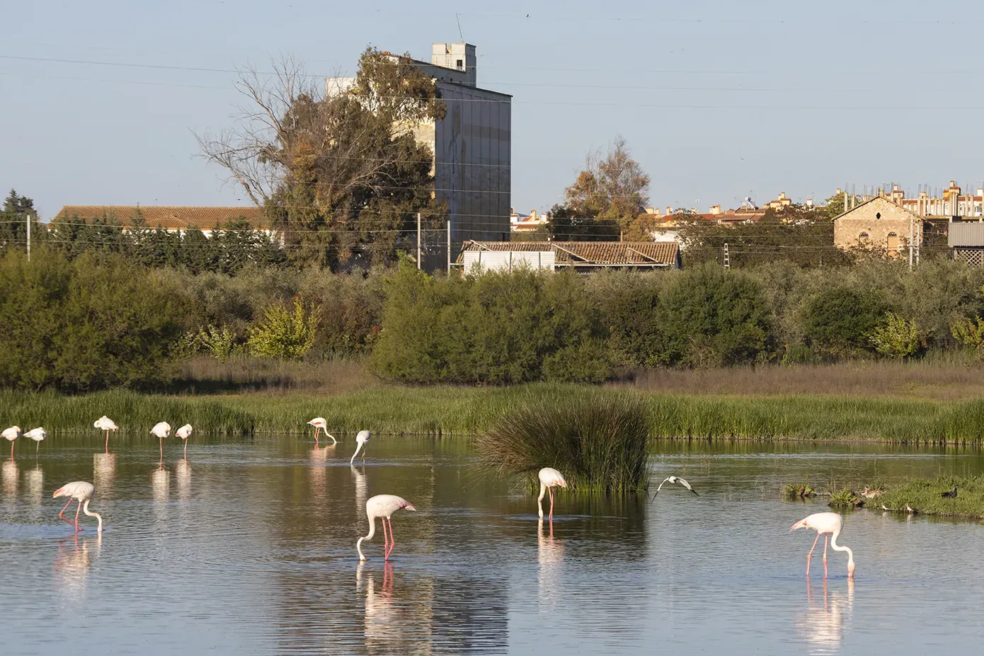 En las zonas más profundas de este canal, donde las raíces de las plantas permanecen encharcadas todo el año, aparecen bosquetes de taraje (tamarix Africana), pequeño árbol que no supera los 5 metros de altura y representa el único componente arbóreo de este área por lo cual goza de gran valor ecológico.